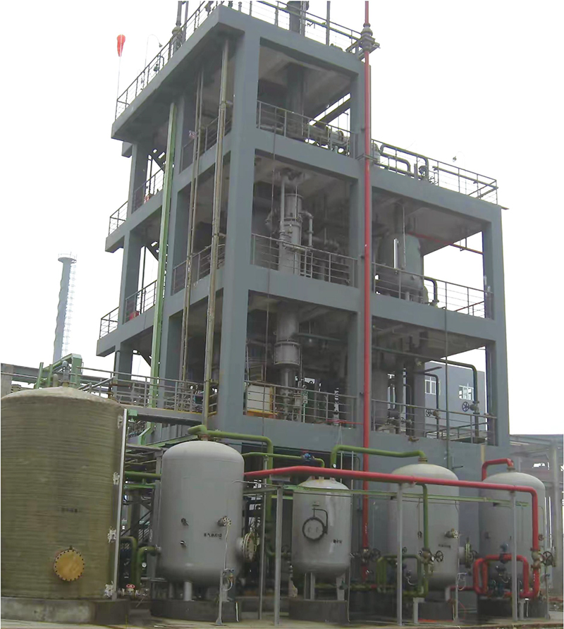 全自控鹽酸深度解吸成套工藝流程:稀酸儲(chǔ)罐20wt%鹽酸通過稀酸泵輸送至解吸塔;配置的CaCI2溶液輸送提濃塔,加熱濃縮至一定溫度和濃度,輸送至解析塔;兩者在塔內(nèi)充分接觸傳質(zhì)傳熱; 在三元共沸點(diǎn)下,HCL從鹽酸中游離出來(lái),高濃度CaCl2吸收水后濃度變稀,返回提濃塔繼續(xù)濃縮,蒸汽冷凝廢水,HCL含量降至1wt%以下,流入酸性水儲(chǔ)罐,輸送至吸收或回用;塔頂含飽和水蒸氣的HCL通過兩級(jí)冷卻器冷卻和除霧后,高純HCL送入總管,所收集冷凝鹽酸返回至塔內(nèi)。通常稀鹽酸深度解吸工藝裝置與濃鹽酸常規(guī)解吸工藝裝置配套使用,濃鹽酸常規(guī)解吸副產(chǎn)的19~21wt%恒沸酸直接輸送至稀鹽酸解吸工藝裝置,實(shí)現(xiàn)閉路循環(huán);另外,31wt%濃鹽酸也可以一步深度解吸,獲得高純氯化氫氣體和含1wt%氯化氫廢水,其流程圖與稀鹽酸深度解吸一樣。整套裝置同樣采用全自動(dòng)DCS控制,具有多種安全連鎖保護(hù)系統(tǒng),確保安全、可靠和穩(wěn)定運(yùn)行。